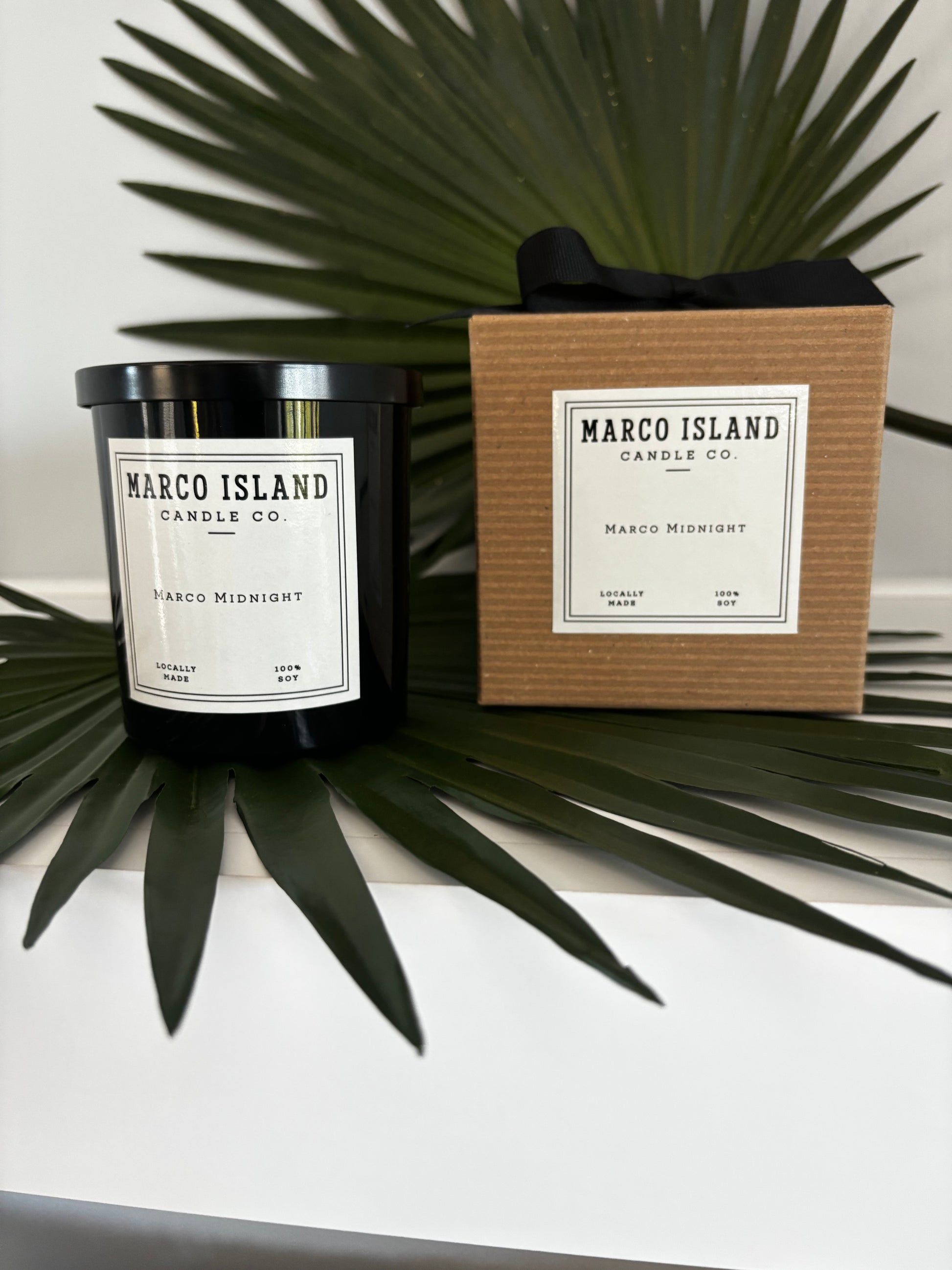 Appealing to both feminine and masculine sensibilities, our Marco Midnight candle blends subtle touches of orange and grapefruit with lavender and sage. Completing the fragrance are deep notes of oak moss, amber, and tonka bean. Add a touch of sparkle and you have the ingredients for an enchanting Marco midnight. And you can burn it after 9 PM!